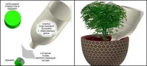 Совет! Любой из выбранных методов, сделанных своим руками или купленный, следует обязательно проверить заранее. Нужно убедиться, что элементы конструкции имеют достаточную водопроходимость для того, чтобы растение не засохло.