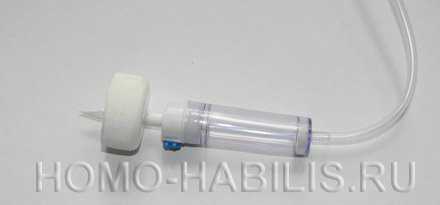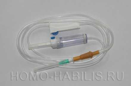 Как видно на фотографии, капельница состоит из воздушной ловушки (прозрачный цилиндрик), игольного узла и соединительной трубки с установленным на ней регулятором.