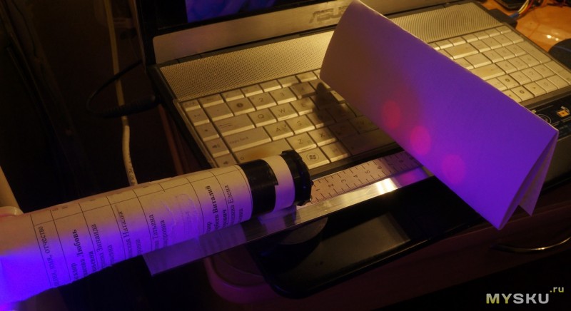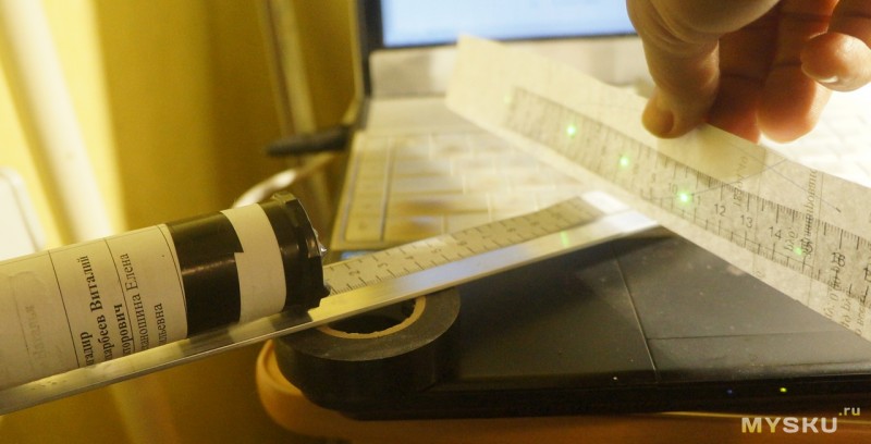 Сворачиваю бумажную трубу, вставляю туда решетку. Креплю к алюминиевому профилю с напечатанной линейкой.