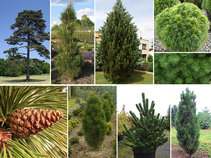 Горная сосна Хампи — высота не превышает 0,5 м, а ширина до 1 м, выращивают в альпинариях. Это густая крона плотной хвоей на коротких побегах. Иголки темно-зеленого цвета, на фоне них, эффектно смотрятся красные почки.