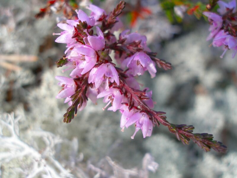 Арктическая красная толокнянка. Справа — лишайник кладония.