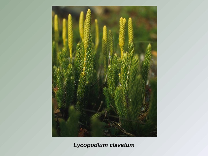 Рисунок \(\PageIndex{1}\): Стробилы плаунов: у некоторых плаунов, таких как Lycopodium clavatum , спорангии расположены группами, называемыми стробилами.