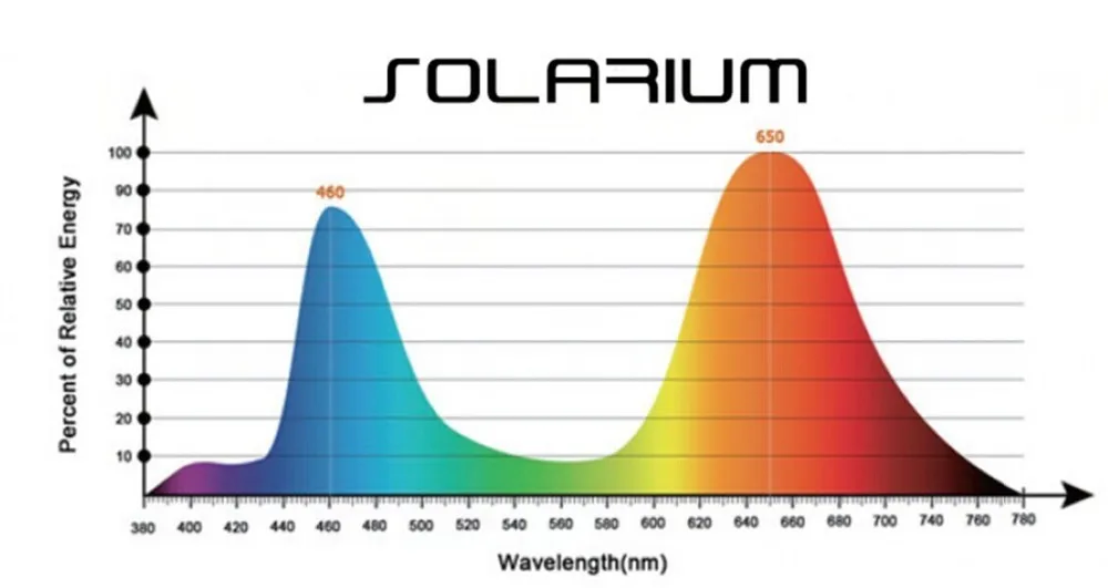 Необходимые для здорового роста и развития 450 и 660 нм остались неизменны, а вот добавление небольшой составляющей желто-зеленой части спектра сделало свечение комфортным для наших глаз.