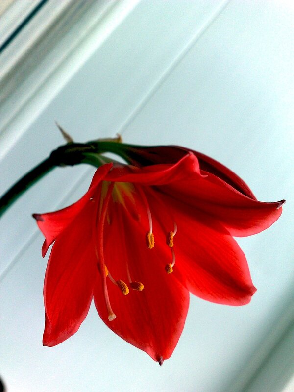 На окне над привлекательным веером из узких темно-зеленых плотных листьев на высоком цветоносе полыхали огнем изящные алые колокола, из которых выразительно выглядывали длинные тычинки с ярко-желтыми пыльниками. Так я влюбилась в валлоту.