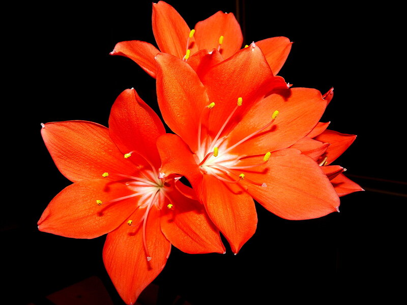 К следующему году луковичка слегка увеличилась в размере. Лето моя валлота провела на улице под навесом. Раз в месяц подкармливала ее раствором минеральных удобрений для цветущих растений. В конце августа между листочками появился небольшой «клювик», который со временем вымахал в 25-сантиметровый цветонос, на вершине которого постепенно наливались цветом бутоны. И вот уже на нем красовались эффектные цветки насыщенного алого цвета. Сначала один, затем второй, третий.