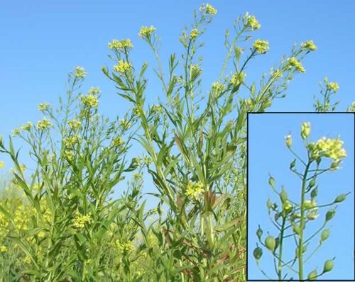 Однолетнее растение семейства крестоцветных, с ветвящимся стеблем и мелкими желтыми цветками в кистях.