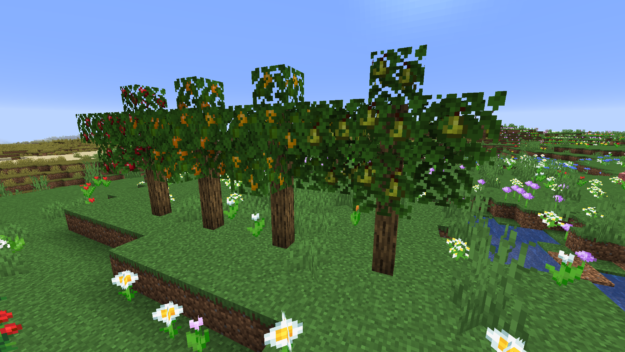 Fruit Trees – мод на Майнкрафт 1.19.2/1.18.2, который добавит в игровой процесс несколько новых объектов для природы мира Майнкрафт. Все новые деревья и кустарники можно найти, если внимательно исследовать мир. Некоторые из новых деревьев будут появляться в теплых биомах. Также есть несколько специальных деревьев для холодных биомов.