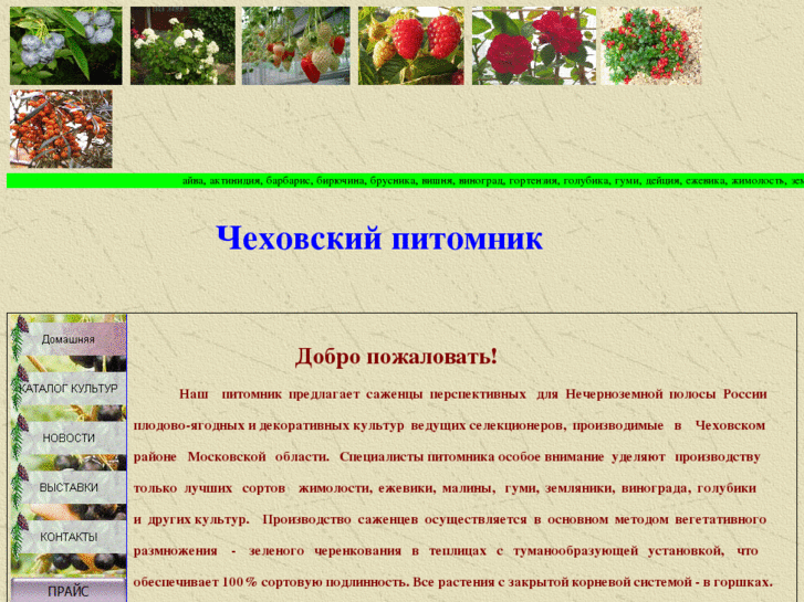 Для нашей компании главное — это качество и доступность посадочного материала для российских садоводов. На сайте можно найти фотографии, подробные описания, характеристики, которые помогут выбрать именно те саженцы плодовых культур, которые подойдут вашему саду.