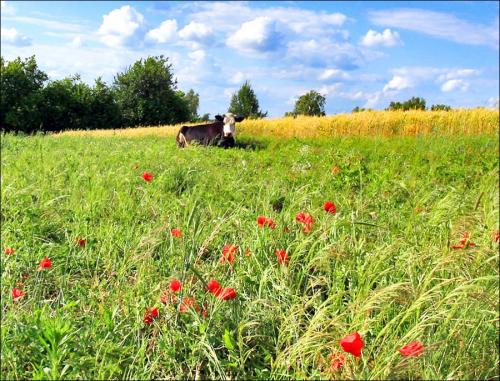 После леса нас встречает степь. Особенно красиво здесь весной и летом. Колышется ковыль, степные гиацинты и ирисы наполняют воздух упоительным ароматом. Осенью по степи будут прыгать "мячики" удивительного растения – "перекати-поле", иногда встречаются зеленые островки из терновника, степной вишни и дерезы – необычного растения из семейства акаций.