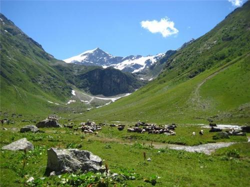 Если пролетать над европейскими Альпами, то есть возможность полюбоваться с высоты изумрудной красотой альпийских лугов. Чуть ниже раскинулись субальпийские высокотравные луга. А подножье гор утопает в зарослях деревьев преимущественно хвойных пород.