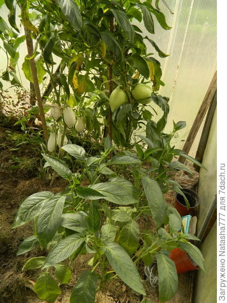 И вдруг как-то я увидела пять плодиков…маленьких. Вот уж радости-то было. Каждый раз, заходя в теплицу, боялась не только дышать, но и глядеть на них. Также прочитав, что пасынки замечательно приживаются, я оборвала несколько пасынков и сразу же рядом воткнула в землю. Была уверена, что ничего не получится, так как земля глинистая, тяжелая…но все они очень быстро укоренились и быстро зацвели