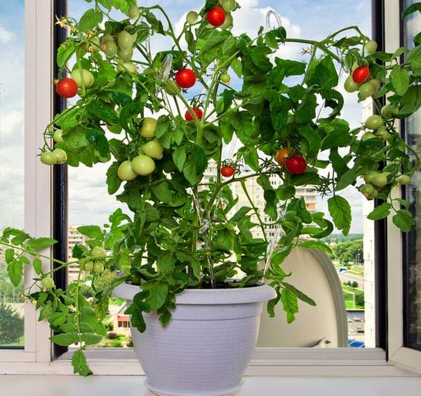 Томаты. Даже такие сложные культуры можно вырастить на подоконнике, только выбирать следует самоопыляемые гибриды, являющиеся к тому же мелкоплодными и низкорослыми сортами. Рассаду высаживают в горшки с «правильной» почвой и поливают умеренно. Новые кусты можно получить черенкованием — они отлично приживаются и быстрее цветут.