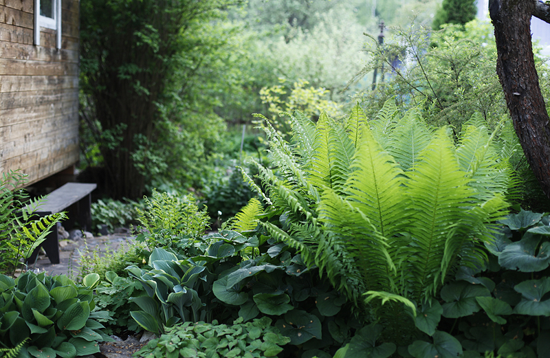 Абсолютно любые папоротники — это лучший вариант для даже самого тенистого сада. Обязательное условие — большое количество влаги.