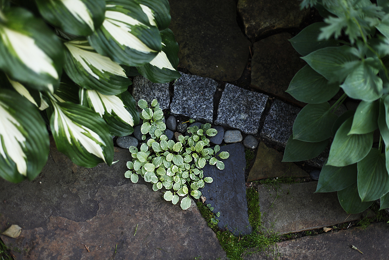 Очиток ложный. Чуть ли не единственный из очитков, который в тени растет лучше, чем на солнце. На фото он цветет розовыми цветами.