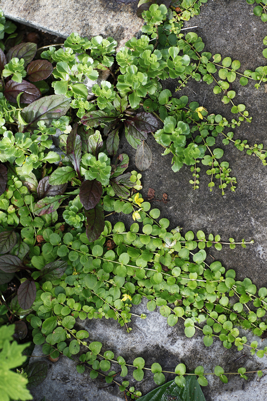 Живучка ползучая.Довольно агрессивное растение, но его легко сдерживать, и оно растет там, где другие расти не хотят. Бывают разные сорта. На первом фото это бронзово-зелено-желтые листья.