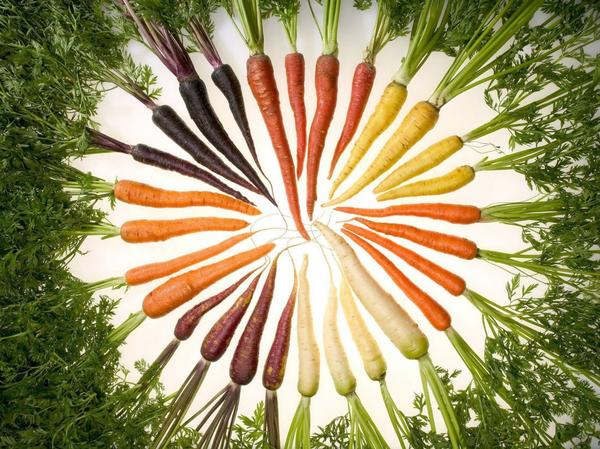 Не думайте, что все знаете про морковь, она тоже способна удивить. Оказывается, морковка бывает и белая, и ярко-желтая, и бурая, и почти черная.В разрезе морковка тоже может иметь разные цвета. Украшаем стол!