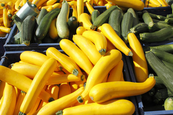 Размером и формой как средняя редька, а в разрезе — натуральный арбуз! Или редиска наизнанку. Малиновая мякоть и бело-зеленая шкурка способны смутить непосвященного. Его горьковатый вкус ближе к центру становится более сладким, но на хрусте это никак не отражается! Очень ценится мастерами карвинга. Таким овощем можно украсить любое праздничное блюдо.Кабачок цуккини «Золотая лихорадка»
