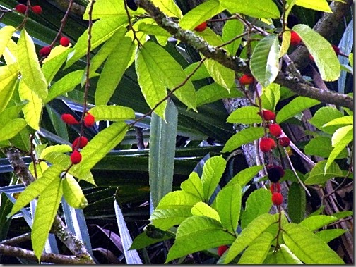 Еще один асплениум. Растет обычно только с одной стороны дерева. Разнообразных асплениумов и прочих эпифитов полно в любом влажном тропическом лесу, что придает голым стволам праздничный и экзотичный вид. Эпифиты занимаются тем, что используют жилплощадь высоких деревьев, этим спасаясь от затенения и избегая объедания травоядными на земле (папоротник выглядит вкусным). К дереву его корни не присоединены, просто растут снаружи коры — он не паразит, а только житель.
