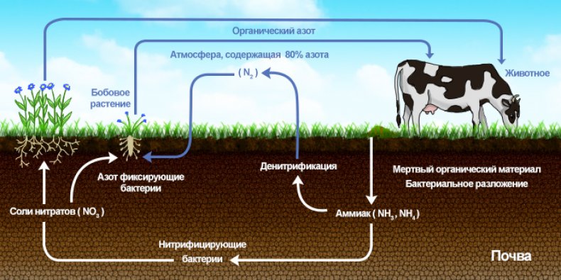 Азот поглощается растениями только после соединения его с другими химическими элементами в форме аммония и нитратов — наиболее доступных форм азота в почве.
