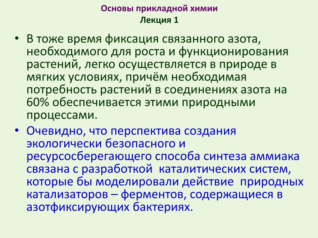 По данным Е. Н. Мишустина, в биологических системах ежегодно фиксируется 176 млн т атмосферного азота, что, например, в три раза превышает производство аммиака для получения удобрений в 1980 г.