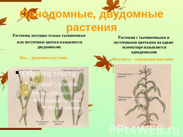 Женские цветы и женские деревья дают плоды и семена.