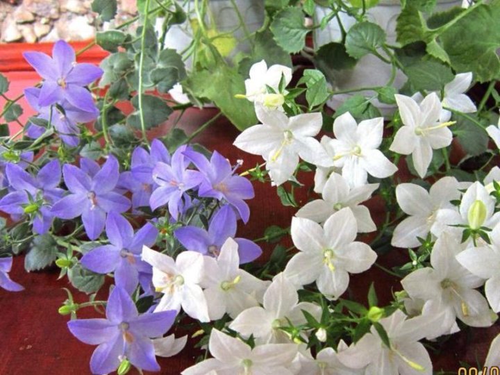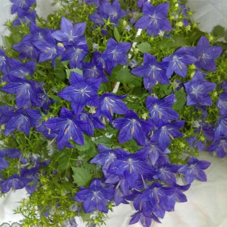 Цветки имеют форму звезды и, зачастую, даже не похожи на колокольчик. Окраска может быть самой разнообразной: от белого до синего с фиолетовым отливом.