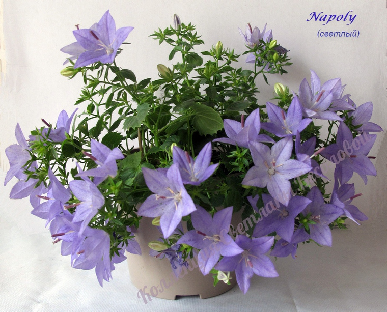 Похожа на махровую кампанулу, но с цветками более мелкого, практически миниатюрного размера — до 1,5 см.